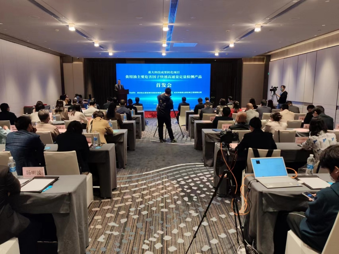 2022年10月15日(星期六)上午,武漢華美維士康生物工程有限公司“重大科技成果轉(zhuǎn)化項目-食用油主要危害因子快速高通量定量檢測產(chǎn)品”首發(fā)會在武漢光谷皇冠假日酒店2樓東湖廳舉行。