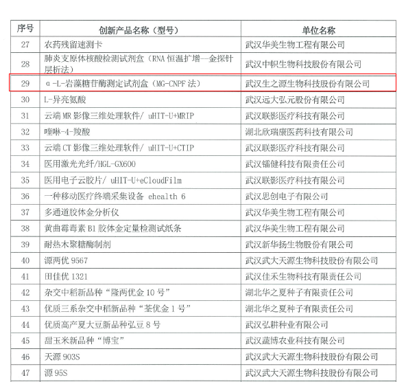 近期, 武漢市科技局、市發(fā)改委、市財(cái)政局公布了2019年度武漢市創(chuàng)新產(chǎn)品目錄,其中武漢生之源生物科技股份有限公司(以下簡稱“生之源”)自主研發(fā)的α-L-巖藻糖苷酶測(cè)定試劑盒(MG-CNPF法)成功入選。