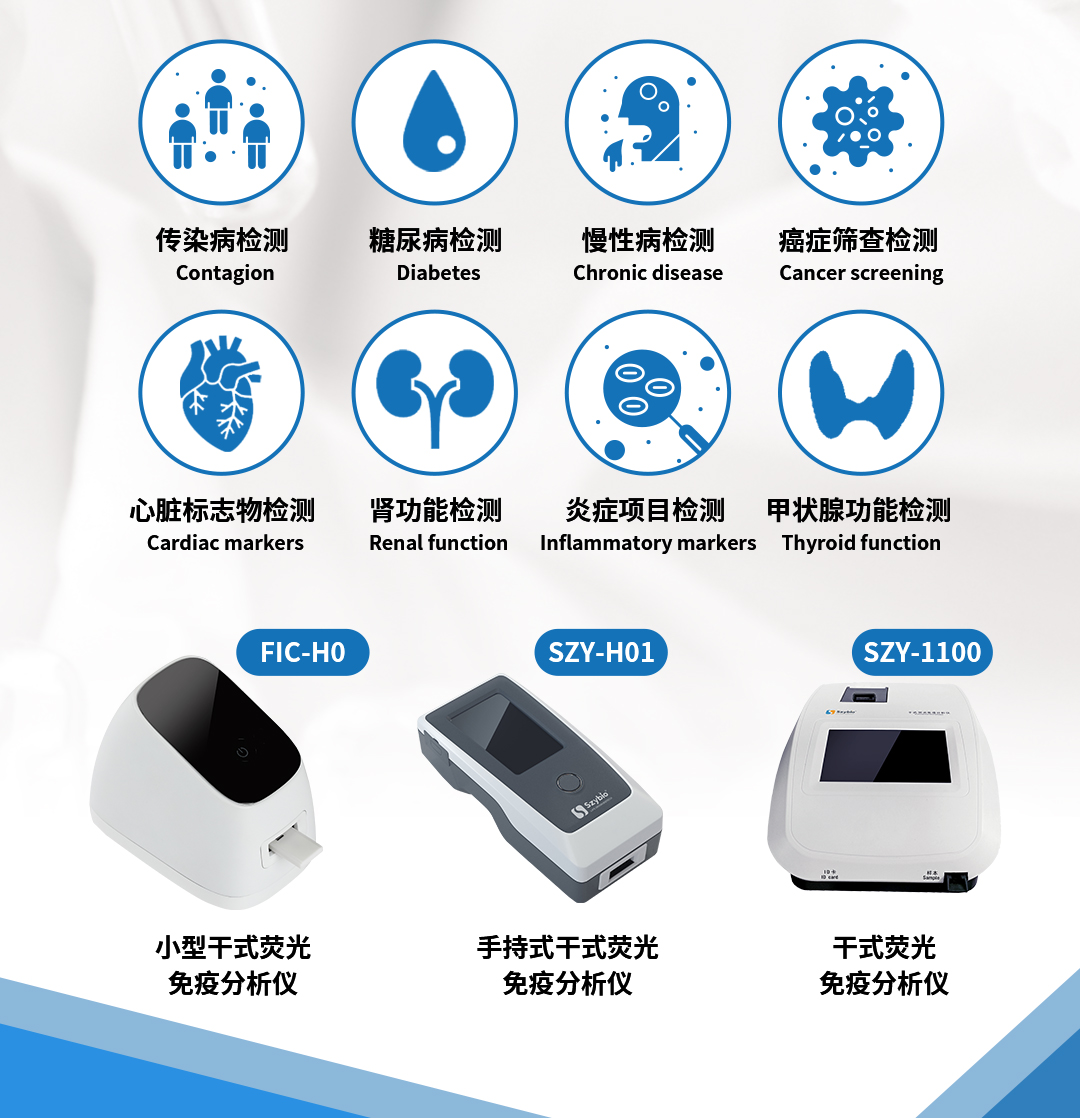 自 2007 年成立以來(lái),我們深耕醫(yī)療健康產(chǎn)業(yè) 18 年,始終以 “用生物技術(shù)服務(wù)健康生活” 為使命,憑借 ISO 13485 質(zhì)量管理體系認(rèn)證、CE 認(rèn)證的品質(zhì)保障,解決方案已服務(wù)全球 20 余個(gè)國(guó)家和地區(qū)的醫(yī)療機(jī)構(gòu)。展會(huì)現(xiàn)場(chǎng),我們將展示核心成果:檢測(cè)項(xiàng)目覆蓋傳染?。‵lu A/B)、糖代謝(HbA1C)、炎癥類項(xiàng)目(CRP)、心臟標(biāo)志物(NT-ProBNP)、癌癥篩查(TK1)等適用場(chǎng)景,同步展出FIC-H0小型、SZY-H01手持式、SZY-1100三款干式熒光免疫分析儀,以干式熒光免疫技術(shù)為核心,為多場(chǎng)景精準(zhǔn)診斷提供穩(wěn)定支撐。我們始終以技術(shù)創(chuàng)新為引擎,致力于推動(dòng)醫(yī)療健康產(chǎn)業(yè)進(jìn)步,為全球客戶提供高質(zhì)量的精準(zhǔn)診斷解決方案。